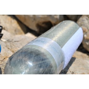 The carbon cylinder allows you to have an autonomy of 30 minutes under water (up to 40 minutes maximum). Its weight is 2.9 kg and its buoyancy is neutral. Its dimensions are available below the description.